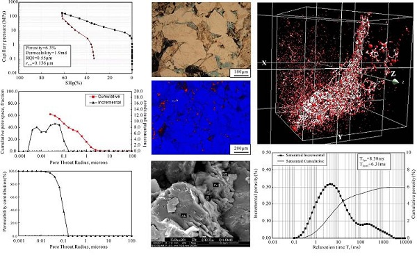 综合表征致密砂岩储层中发育的不同类型和不同尺度大小的孔喉组合特征是油气储层研究前沿和热点领域,该研究在阐明孔隙结构影响地质因素的基础上,综合研究了基于铸体薄片、扫描电镜、压汞曲线、核磁共振、氮气吸附和
