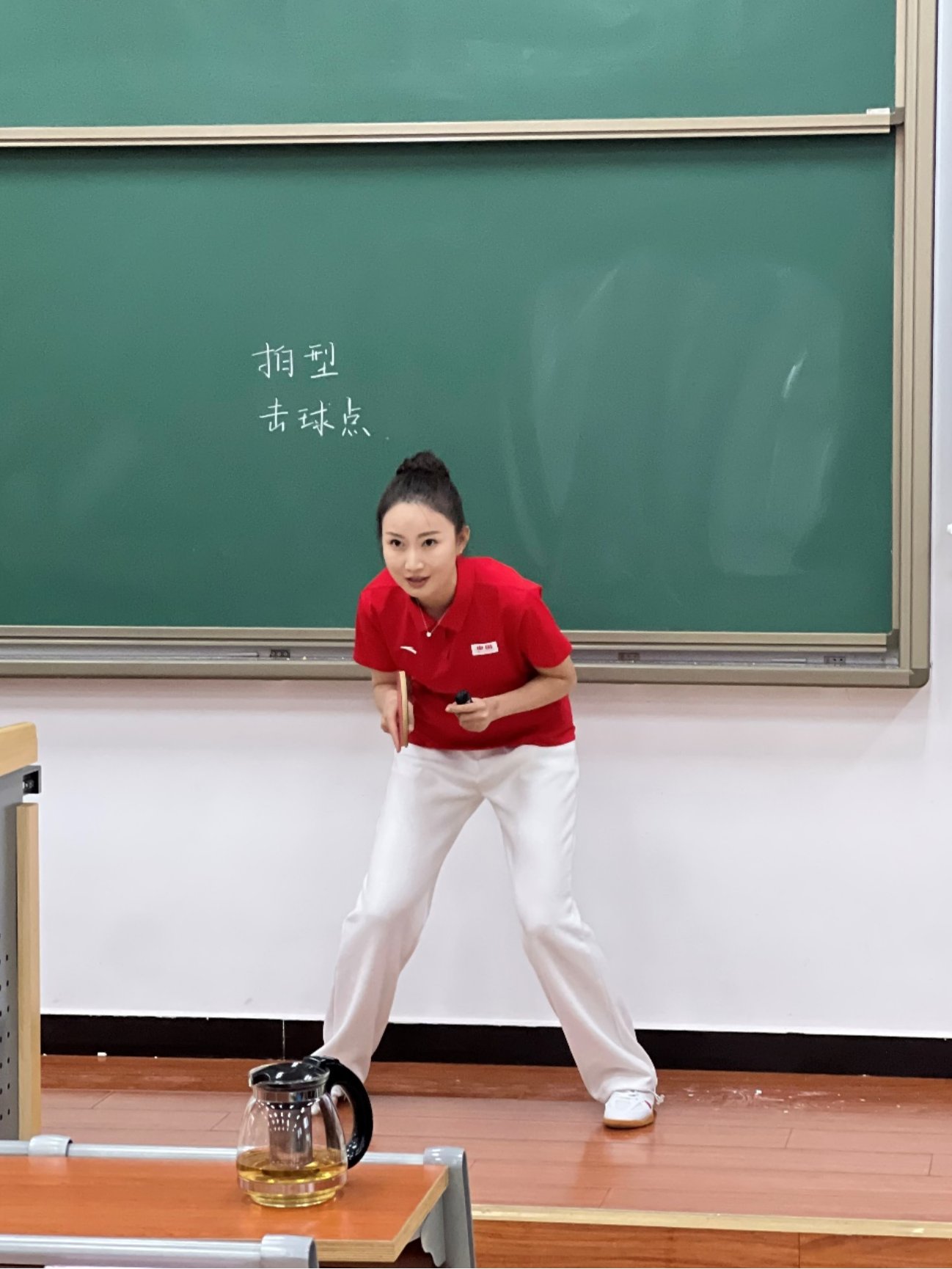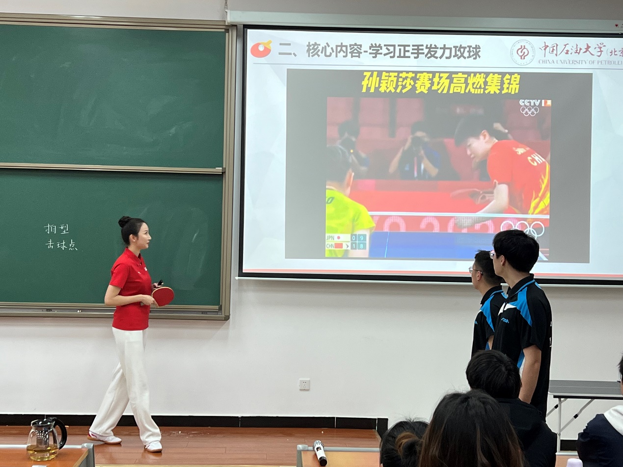 在观摩学习各位参赛教师的教学技巧之余,学院教师也积极为本院的参赛教师加油鼓劲。吕天慈老师在赛场上出色地展示了自己多日努力的成果,通过高超的专业素质和极富感染力的讲述使乓乓球技术和国球精神深入人心,最终成功取得文史组第一名的好成绩,同时斩获最佳现场展示奖和最受学生欢迎奖。王合霞老师荣获优秀指导教师奖!