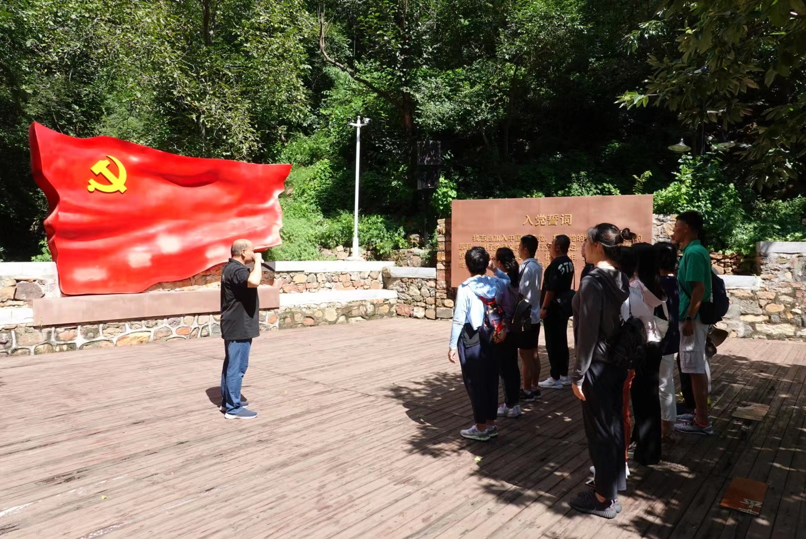 在讲解员的带领下,学院教职工参观了平谷第一个党支部成立旧址——红崖洞,学院党员在宣誓广场进行庄严宣誓。随后,学院教职工重温抗战小路,激发健身热情。之后参观了红歌台和冀东西部地分委旧址,学习抗战精神。最后参观了鱼子山抗日战争纪念馆,学习革命文物和文献资料,缅怀过去,展望未来。
