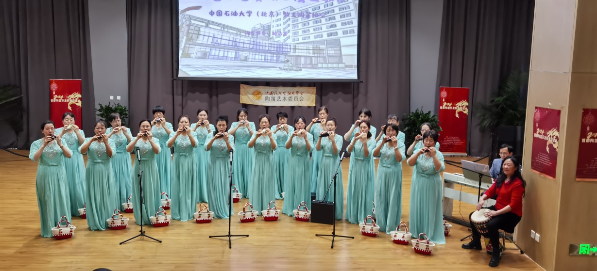 活动中,中石大教工陶笛协会演奏了五重奏《山鹰之歌》、七重奏《小苹果》以及陶笛加舞蹈《万疆》,致公党党员赖达富老师表演了三管陶笛独奏《游牧时光》。老师们精湛的表演和优美的舞姿,给观众留下难忘的瞬间。