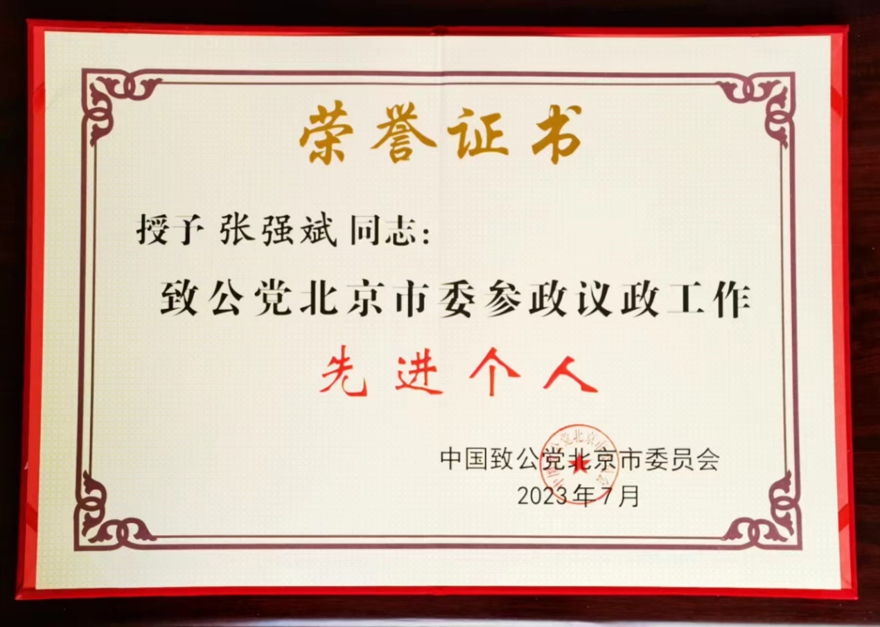 1月2日,中国致公党北京市第十届委员会第三次全体会议在北京召开,会议对2019-2022年参政议政工作先进集体、先进个人、优秀成果进行了表彰。中石大致公党党员张强斌教授荣获“参政议政工作先进个人”称号,并收到中共北京市委统一战线工作部的感谢信。