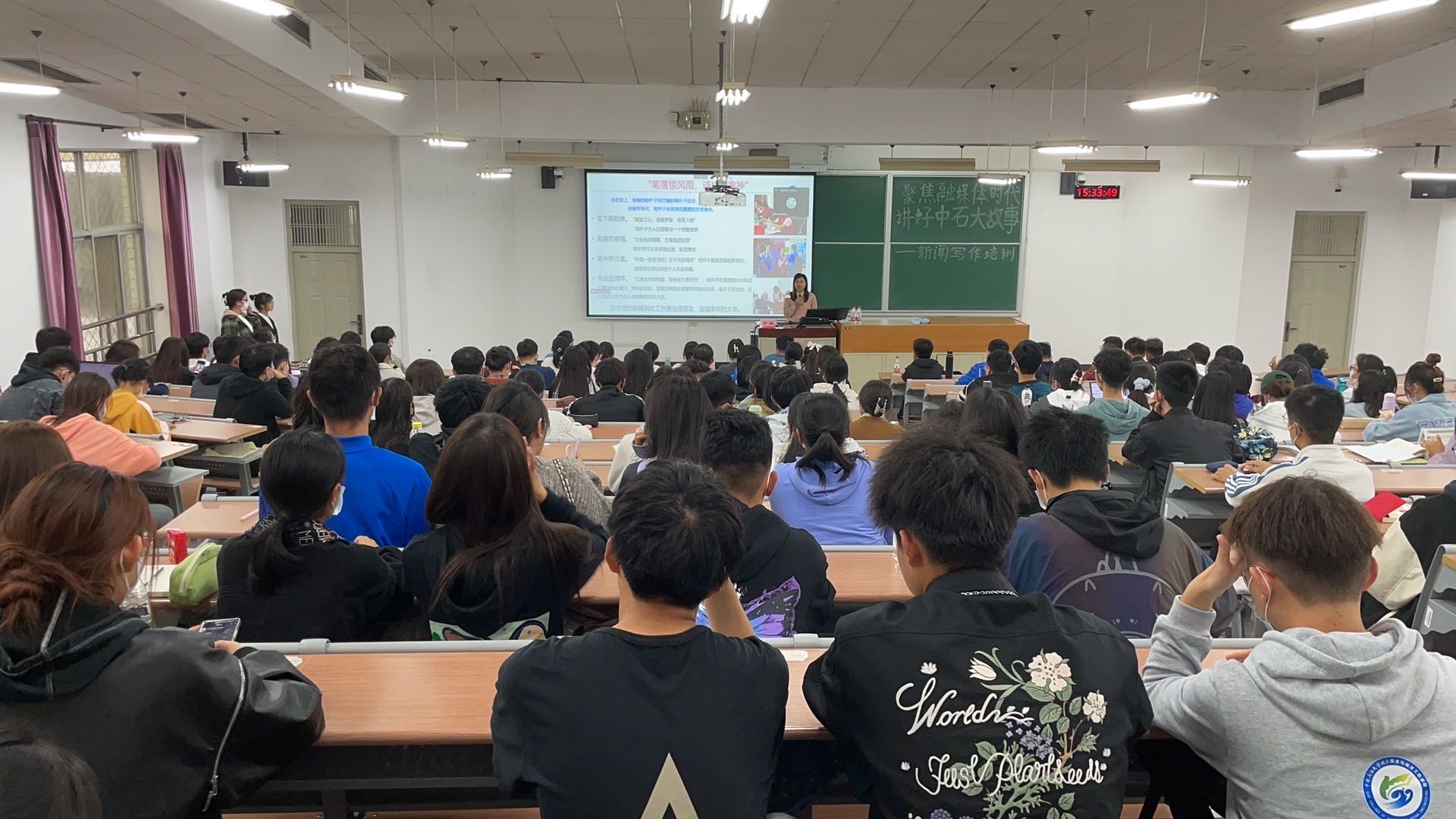 10月13日下午,beat365在线唯一官网(北京)举办“聚焦融媒体时代,讲好中石大故事”新闻写作培训,并通过第二课堂系统发布。近300名学生参加培训。