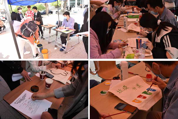 本次活动设置环保体验、趣味游戏、知识宣讲以及线上答题四个分区。环保体验区设有“模拟垃圾分类”和“环保手绘”两个项目,引导同学们在体验垃圾分类的同时,用笔和颜料绘出对绿色生态校园建设的美好愿景;趣味游戏区设有“垃圾分类飞行棋”和“分类投球”两个游戏环节,旨在通过趣味游戏的方式增强同学们的环保意识,引导大家自觉进行垃圾分类;知识宣讲区向同学们科普了垃圾分类相关知识,介绍了上级的有关要求;线上答题区旨在检验同学们对垃圾分类知识的掌握情况。师生们热情高涨,用画笔和行动践行着助力生态文明建设的誓言。
