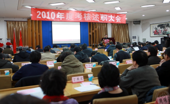 1月13日上午,beat365在线唯一官网2010年度校领导班子和领导干部考核述职大会在第四会议室举行。全体校领导、二级干部、党委委员和纪委委员、学术委员会委员、教代会主席团成员、党代会部分代表、民主党派负责人、各级人大代表和政协委员、教师代表、职员代表、学生代表共122人参加了会议。
